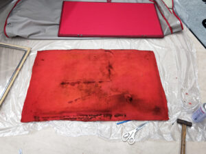今週も宜しくお願い致します。昨日よりMG TF1500漬けになっております。査定の達人にお願いして、修復歴有か、無しかをみてもらいました。私の見解ですと、有りかなと思いましたが、結果はフレーム類にダメージなども無いので、修復歴無しで大丈夫でしょうと結果が出ました。リアの収納部分も布が貼って有りましたが、ダメージがございましたので、布を張り替えてみました。本日は買取車両の引取もございましたので、作業再開です。まだまだ続きます。